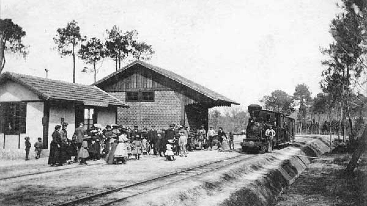 Ce projet a été proposé par un riche entrepreneur bayonnais, Mr Ader; la voie de 75 cm de large transporterait les bois et pour la rentabiliser, on pourrait y adjoindre des wagons pour les voyageurs. Une subvention de 30 000 frs lui est accordée; Mr Ader crée la Société des chemins de fer économiques et forestiers des Landes (S.E.F.L.); la ligne est ouverte en 1907. Le train, tiré par une locomotive allemande, possède 2 wagons prévus pour 60 voyageurs; en 1ère classe, on est assis confortablement sur des coussins démontables posés sur des sièges en lattis poli, avec entretoises en acajou; en 2ème classe, on doit se contenter de sièges en lame de pitchpin vernis. Les marchandises (en majorité poteaux de mine) sont transportées sur 12 plates formes de 5 tonnes chacune.