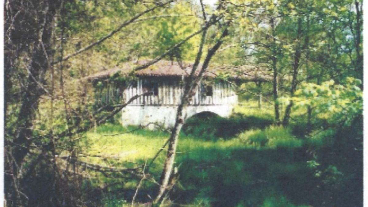 Construit en bois, sur pilotis, le moulin du Houns est situé en plein bourg où la Gouaneyre se déroule dans des méandres naturels et artificiels (il a fallu dévier la route et construire un nouveau pont).