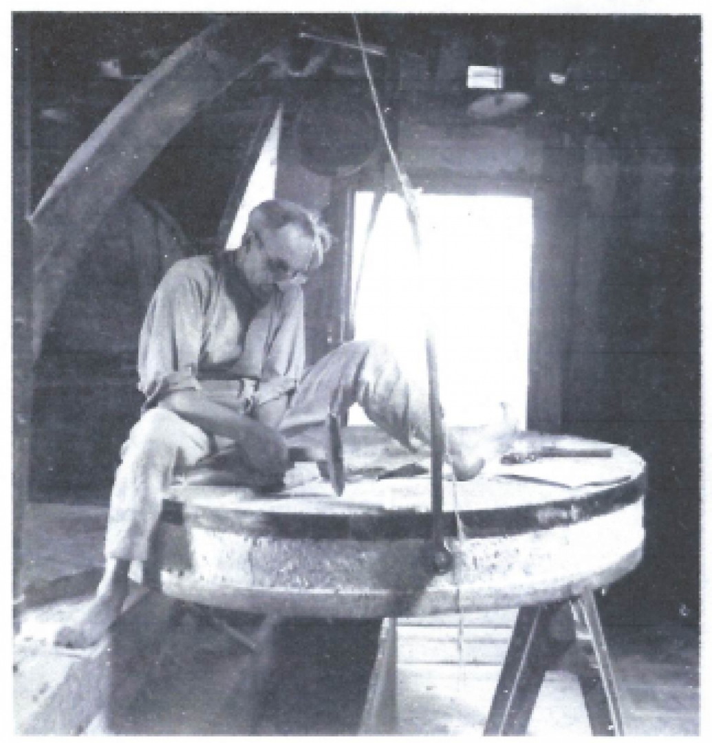 Toulgouat nous renseigne longuement sur le fonctionnement du moulin qu’il serait trop long de reproduire ici. Retenons que le silex des meules devait être repiqué périodiquement pour qu’elles gardent leur efficacité; ce savoir faire se transmettait de père en fils. Depuis 1911, la meule n° 3, de secours était actionnée par une locomotive à vapeur; à partir de 1930, elle fut remplacée par un moteur à essence et à naphtaline. La turbine entraînait aussi une dynamo produisant du courant électrique pour l’éclairage du moulin.